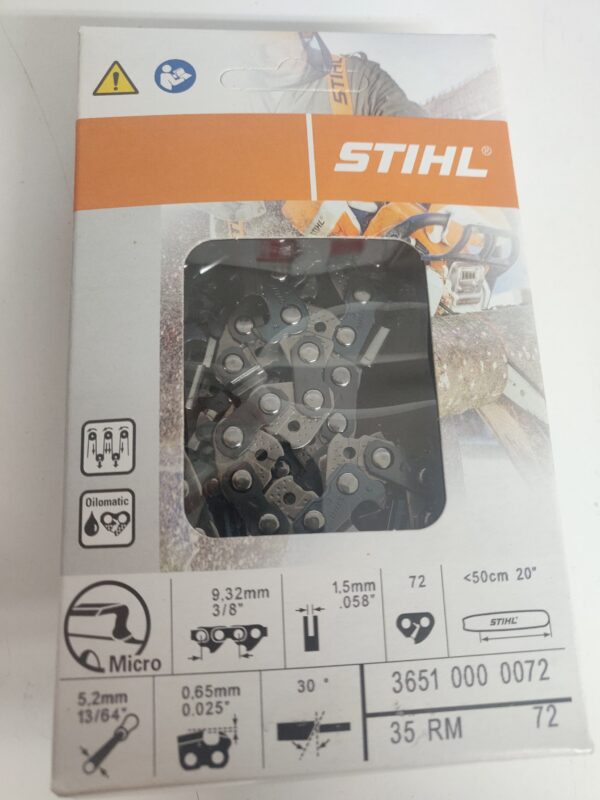 Catena Stihl 35 RM (Rapid Micro Catena) passo 3/8″ spessore 1,5 mm, 72 maglie con barra da 50 cm per motosega originale.
