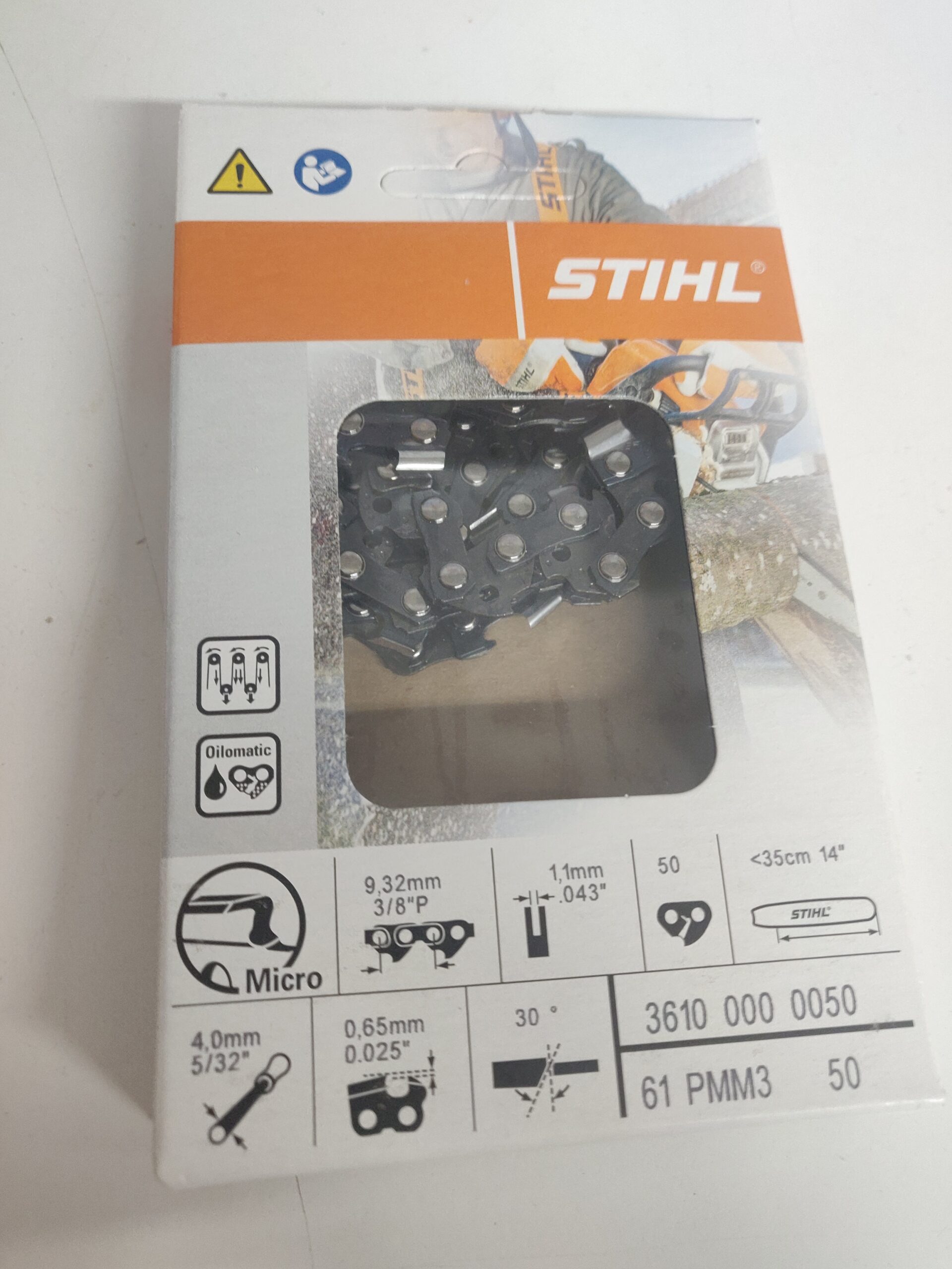 Catena Stihl 61 PMM3 (Picco Micro Mini Comfort 3) passo 3/8″ spessore 1,1 mm, 50 maglie con barra da 35 cm motosega originale per modelli: