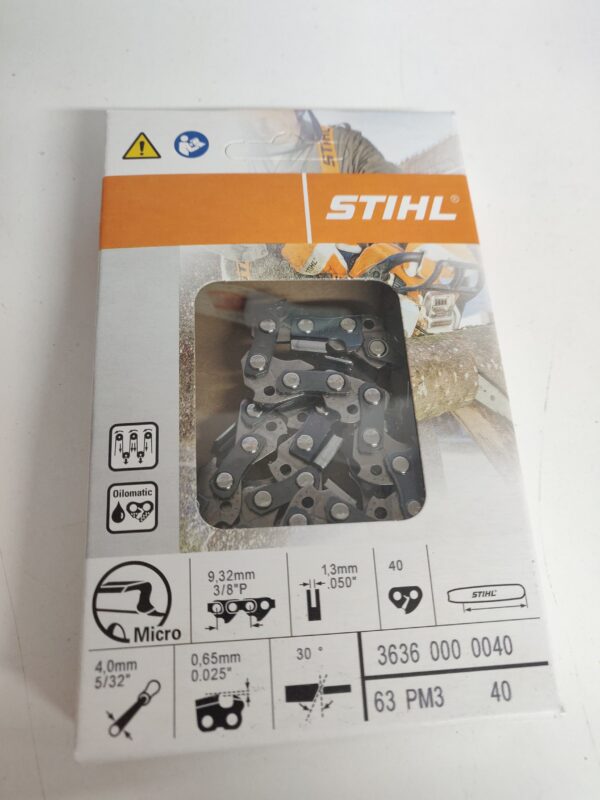 Catena Stihl 63 PM3 (Picco Micro 3) passo 3/8″ spessore 1,3 mm, 40 maglie con barra da 30 cm per motosega originale.