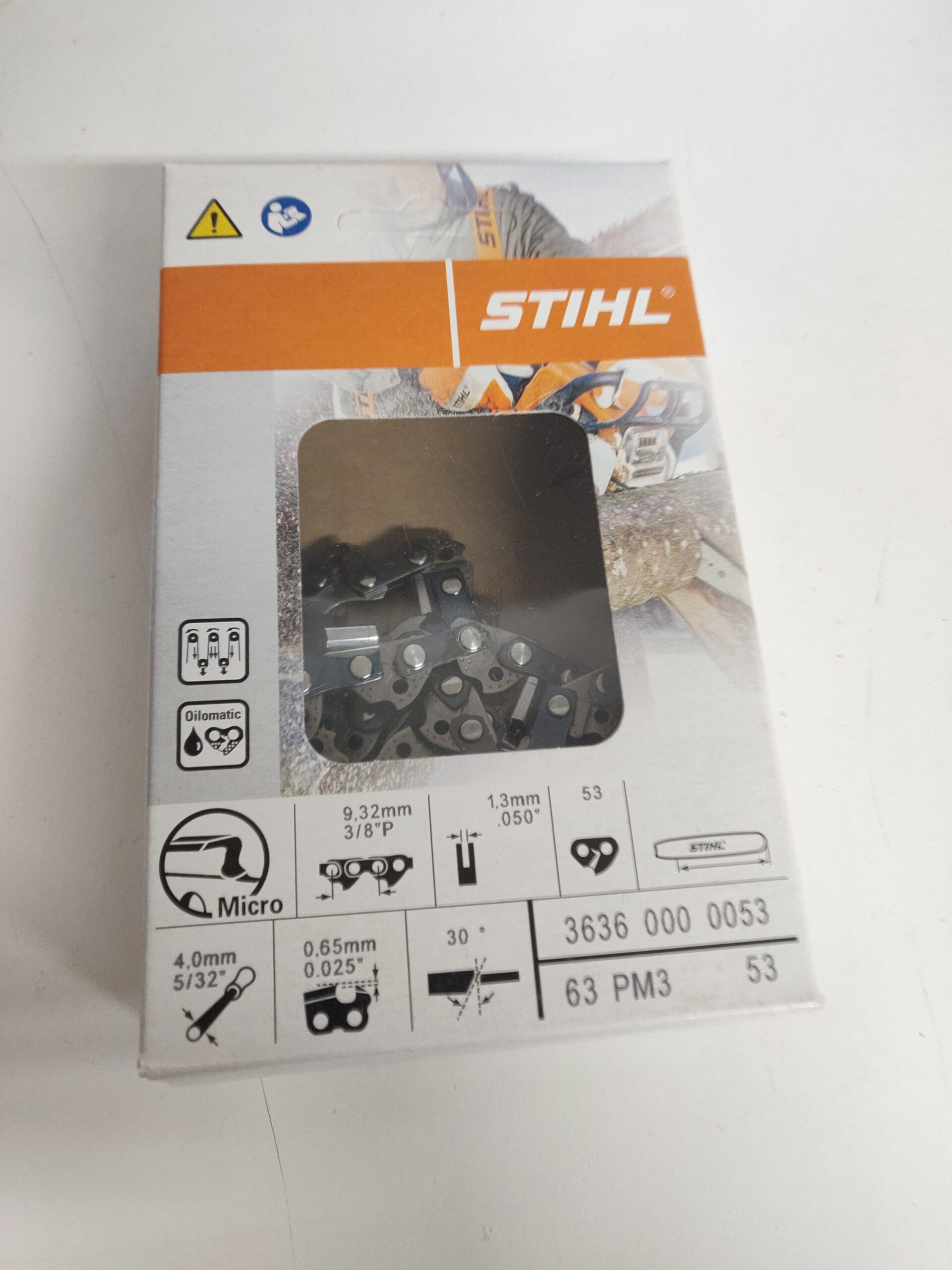 Catena Stihl 63 PM3 (Picco Micro 3) passo 3/8″ spessore 1,3 mm, 53 maglie con barra da 35 cm per motosega originale.
