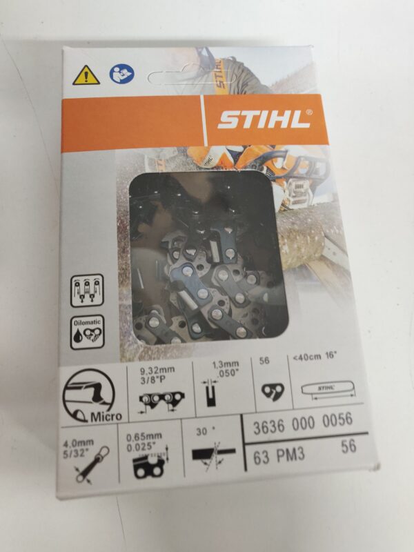 Catena Stihl 63 PM3 (Picco Micro 3) passo 3/8″ spessore 1,3 mm, 56 maglie con barra da 40 cm per motosega originale.