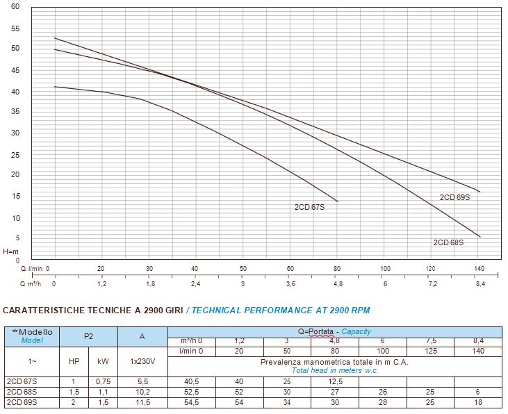 - Alimentazione monofase 230V-50Hz, con protezione termica