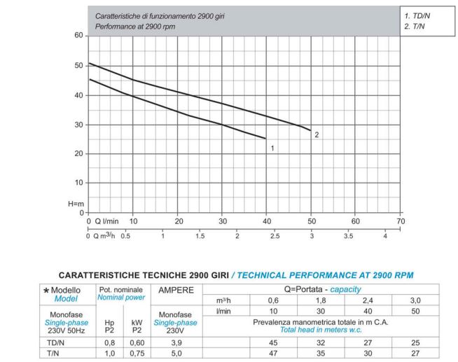 - Alimentazione monofase 230V-50Hz, autoprotetto con condensatore permanentemente inserito