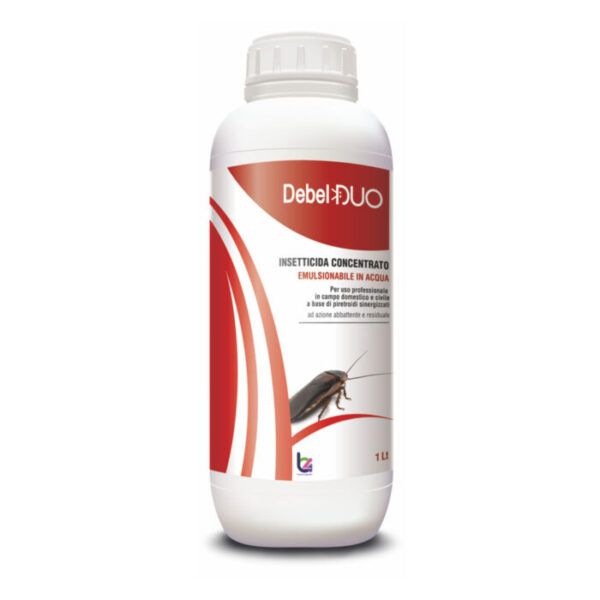 Debel Duo è un insetticida concentrato emulsionabile in acqua, ad ampio spettro d’azione. Costituito da una associazione di piretroidi sinergizzati, idoneo per la maggior parte degli interventi di disinfestazione ambientale. Garantisce una lunga azione residuale dovuta alla cipermetrina ed un eccellente potere abbattente grazie alla tetrametrina unita al piperonil butossido. Da impiegarsi per la lotta contro mosche, zanzare, blatte, formiche, zecche e pulci.